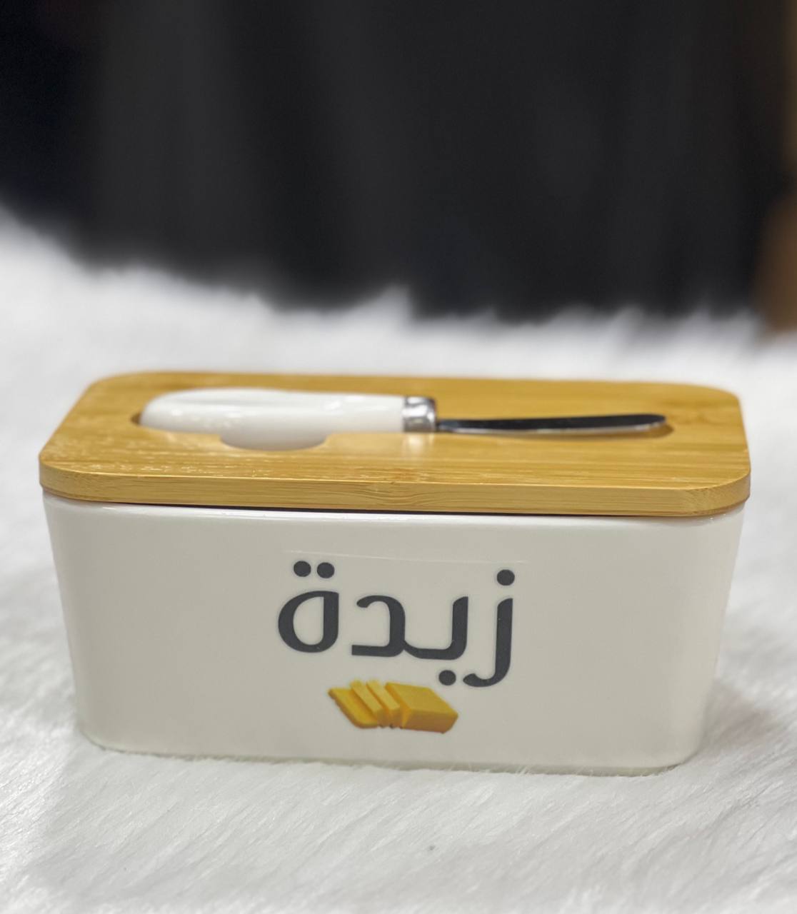 طاجن او حافظة زبده بورسلين بغطاء خشب بامبو